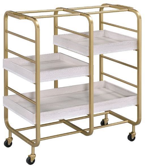 Whether you're brining a bit of contemporary appeal to your well-decorated area or complementing a chic aesthetic with a touch of industrial appeal, this Vorrik serving cart will be a visually appealing addition to your space. Featuring sleek metal frame and three wooden traysRead More
