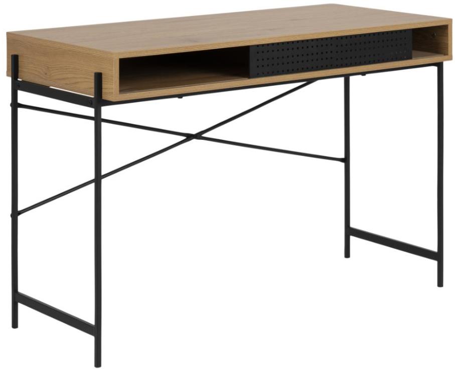 Elevate your office room with the Angus Office Desk from Actona. Shown in matt wild oak paper and matt black metal base. Make a bold statement by incorporating this stunning furniture into your home.Read More