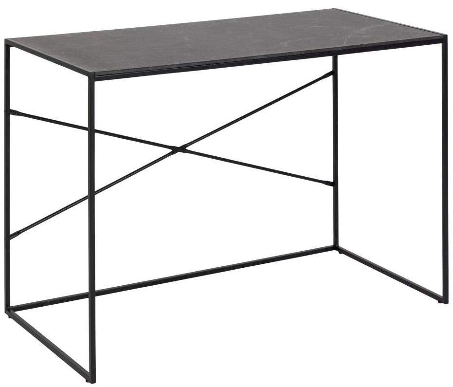 Elevate your office design with the Infinity Office Desk from Actona. Shown in melamine black marble Izmir rough and matt black rough powder-coated metal base. Make a bold statement by incorporating this stunning furniture into your home.Read More