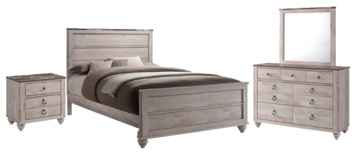 This bedroom collection features simple, but charming designs with a rustic two-tone finish. The collection features details such as turned bun feet, ring hardware, and clean frames. The centerpiece of the collection, the classic panel bed has a planked panel design.Read More