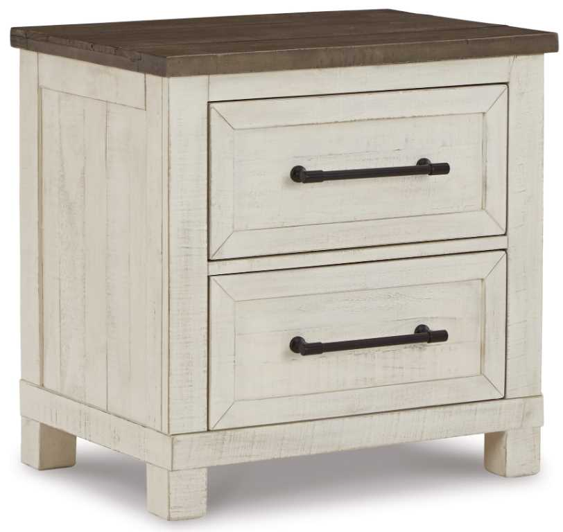 Vintage casual styling made with pine solids and veneer with an engineered wood substrate. Two-tone finish scheme with distressed weathered gray tops set on distressed vintage white cases. Cases feature a timeless Shaker design with fully finished, dovetailed drawer boxes and ball-bearing side glides.Read More