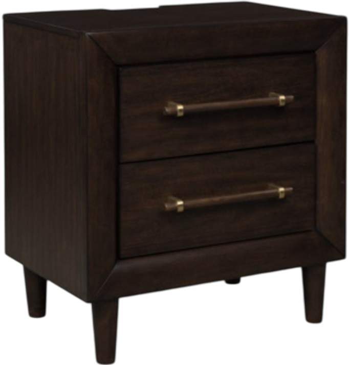 This two-drawer nightstand features a rich merlot finish and sleek metal drawer pulls with smooth-gliding drawers, it offers convenient storage for bedside essentials. Its compact size and sturdy construction make it a functional and stylish addition to any bedroom setup.Read More
