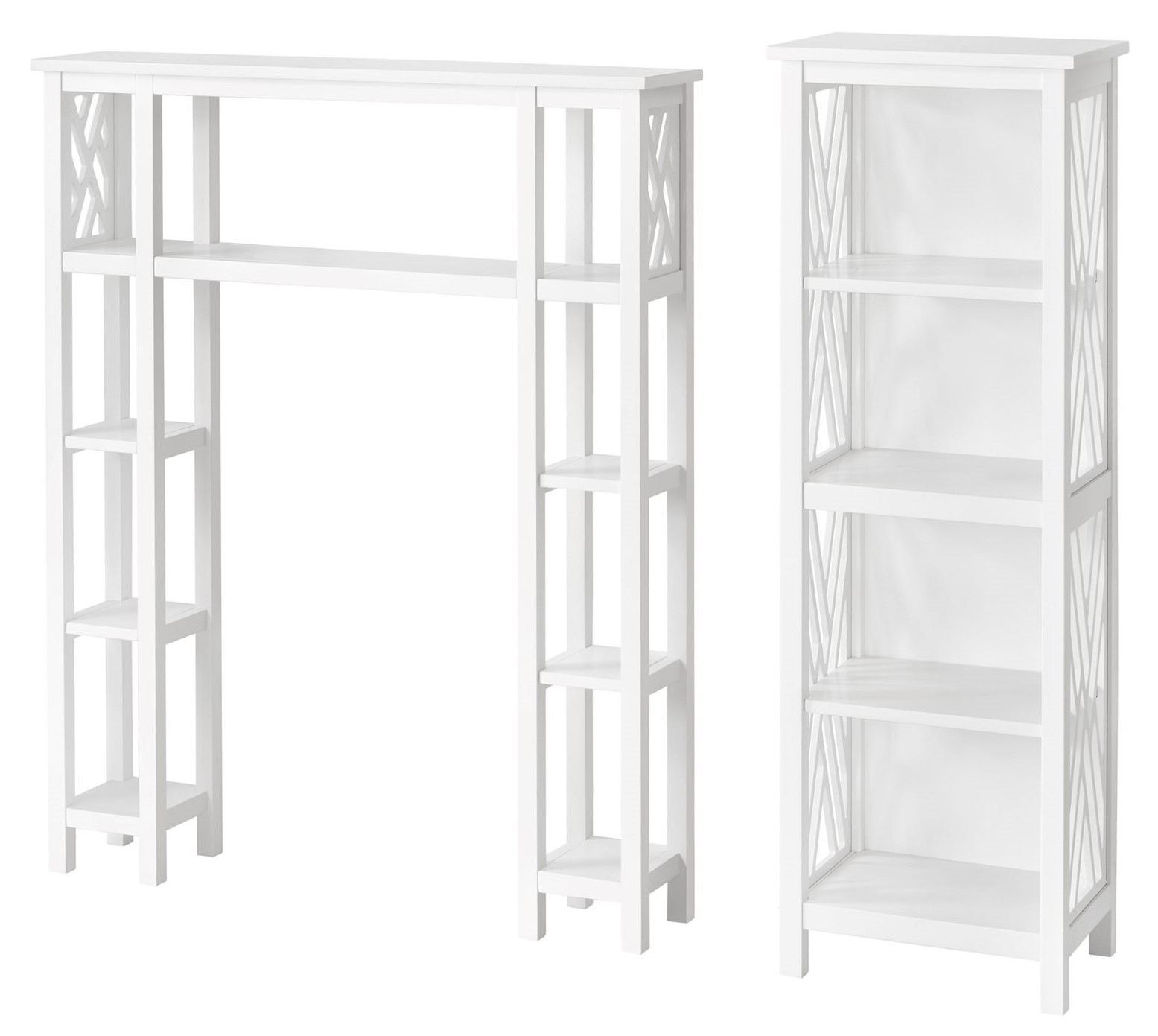 Bolton Furniture Coventry Bath White Over Toilet Open Shelving Unit with Left and Right Side Shelves and Bath Tall Storage Shelf
