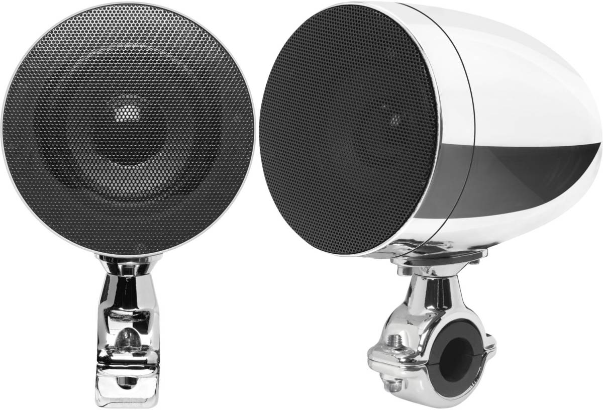 Pair of chrome 3" full range motorcycle speakers with built in amplifier and wired remote volume control.Read More