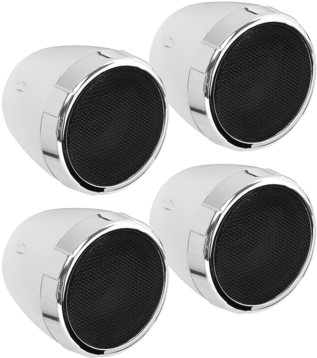 Chrome motorcycle/ATV sound system with Bluetooth audio streaming, two pair of 3" weather proof speakers, aux input and volume control.Read More