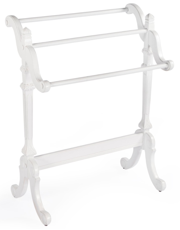 This distinctive traditional quilt rack will stylishly display blankets, quilts, throws, or even guest towels. Crafted from hardwood solids, it features three horizontal rails with carved supports in a driftwood finish.Read More