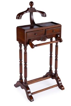 This elegant valet is a must for anyone with a flair for fashion. Handcrafted from solid hardwood, it features a sculptured wood hanger, ideal for a jacket, shirt, or blouse, as well as a pants hanger, two drawers, and a top storage shelf.Read More
