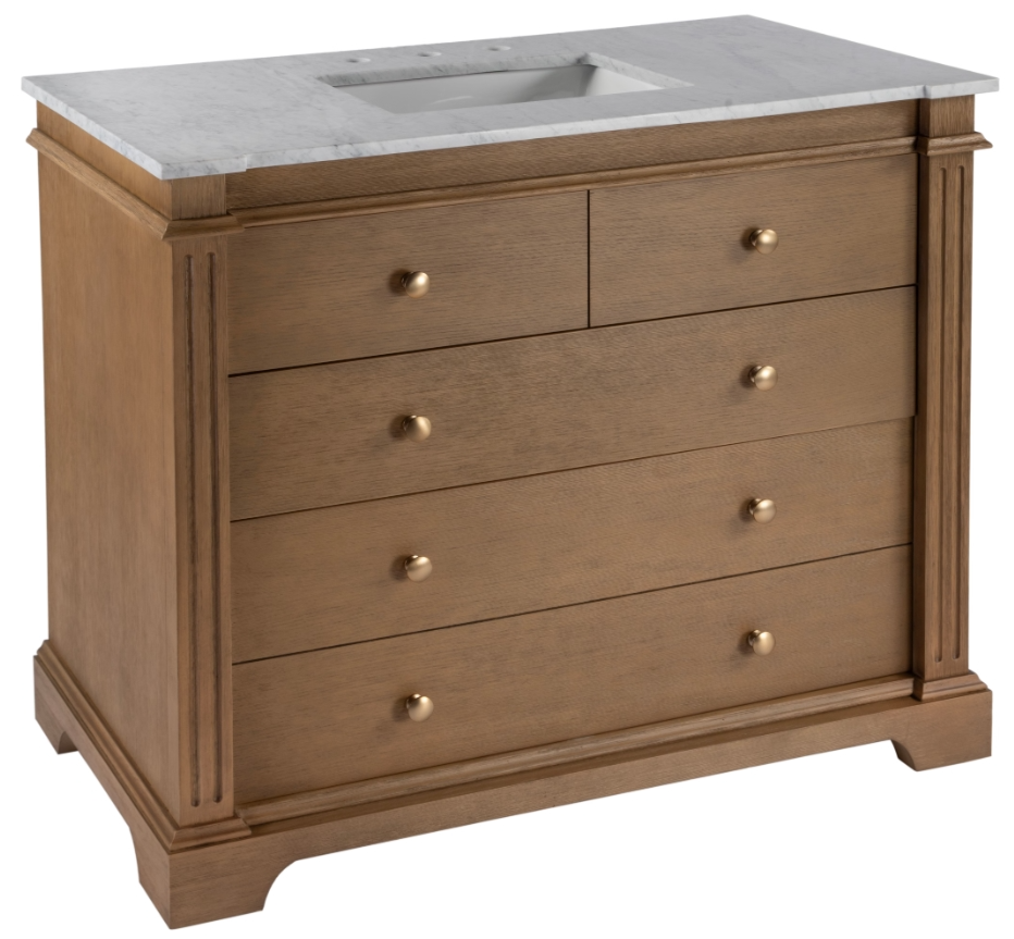 Enhance your bathroom renovation with the Butler Specialty Company Rochelle 42" Bathroom Vanity Set, known for its stunning design and superior quality. Expertly crafted, it features classic crown molding and fluted trim leg detailing.Read More