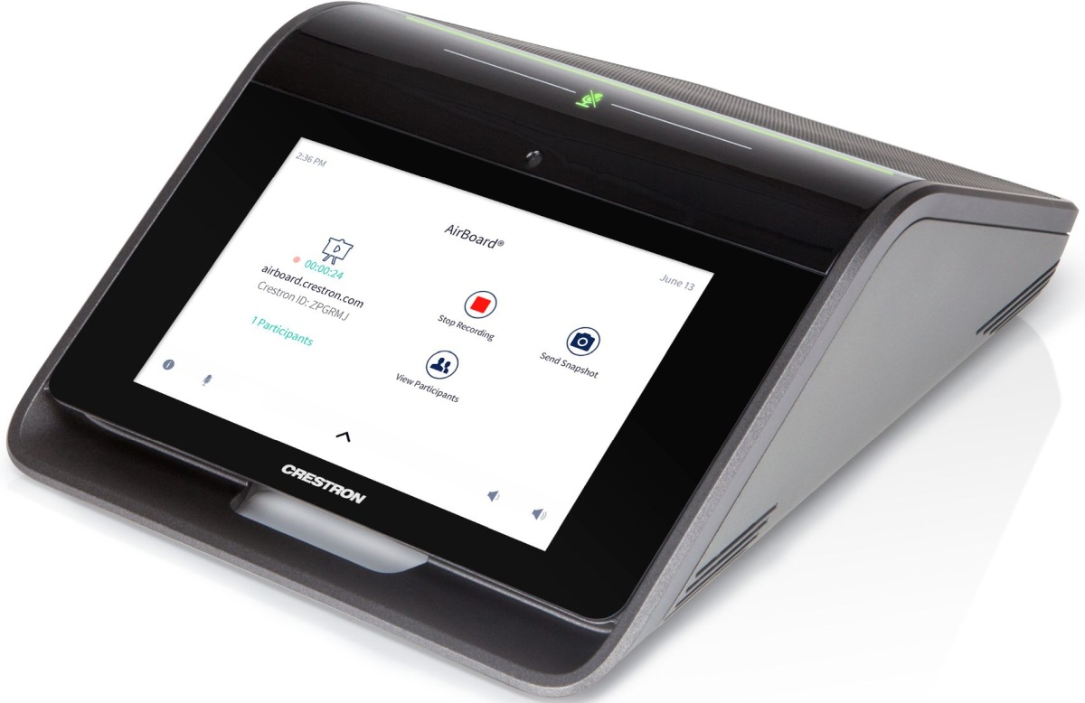 Crestron Mercury’s unique sloped shape is not only attractive and unobtrusive — it’s also functional, allowing for placement at either the center or head of the table. Large or long tables are easily accommodated by adding up to two mic pods (CCS-UCA-MIC KIT sold separately), which may be daisy-chained or individually home-run to the main console.