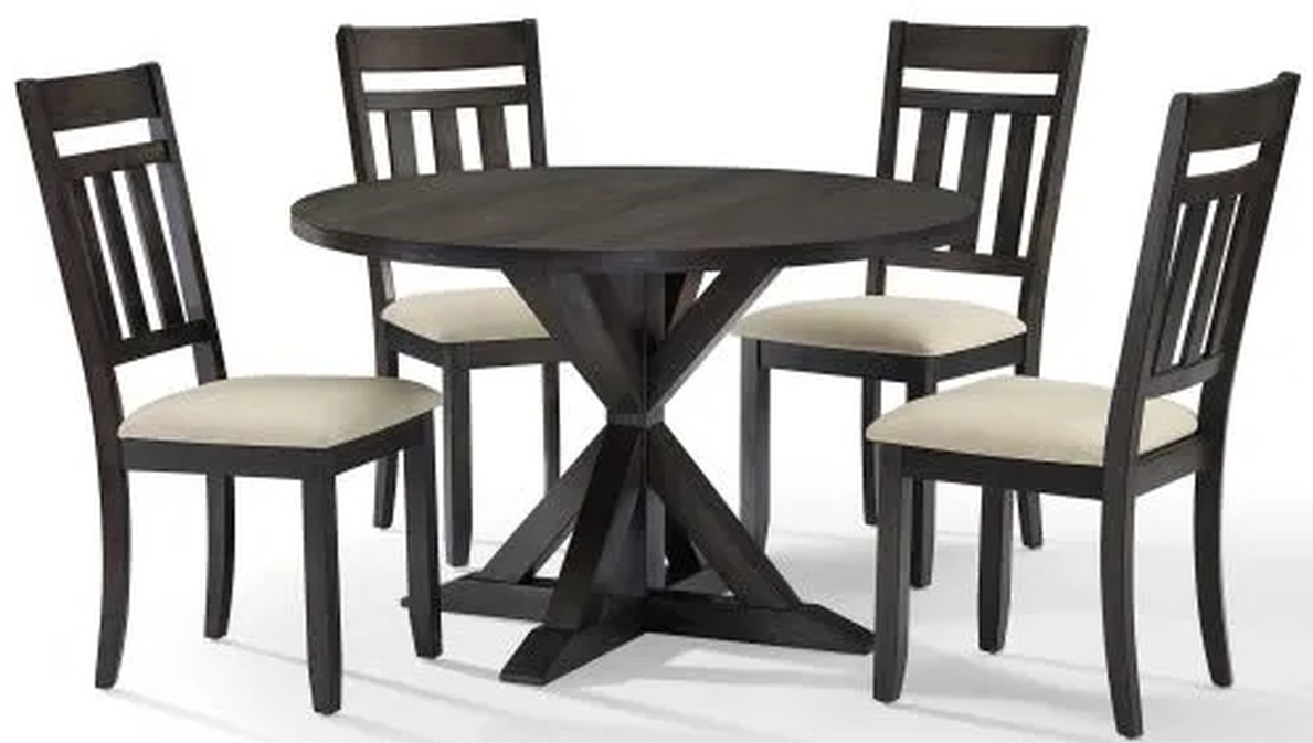 Sure to be the focal point of your modern farmhouse decor, the Hayden 5pc Round Dining Set brings rustic style to family gatherings. The large round table top can comfortably accommodate four diners for a casual family meal.Read More