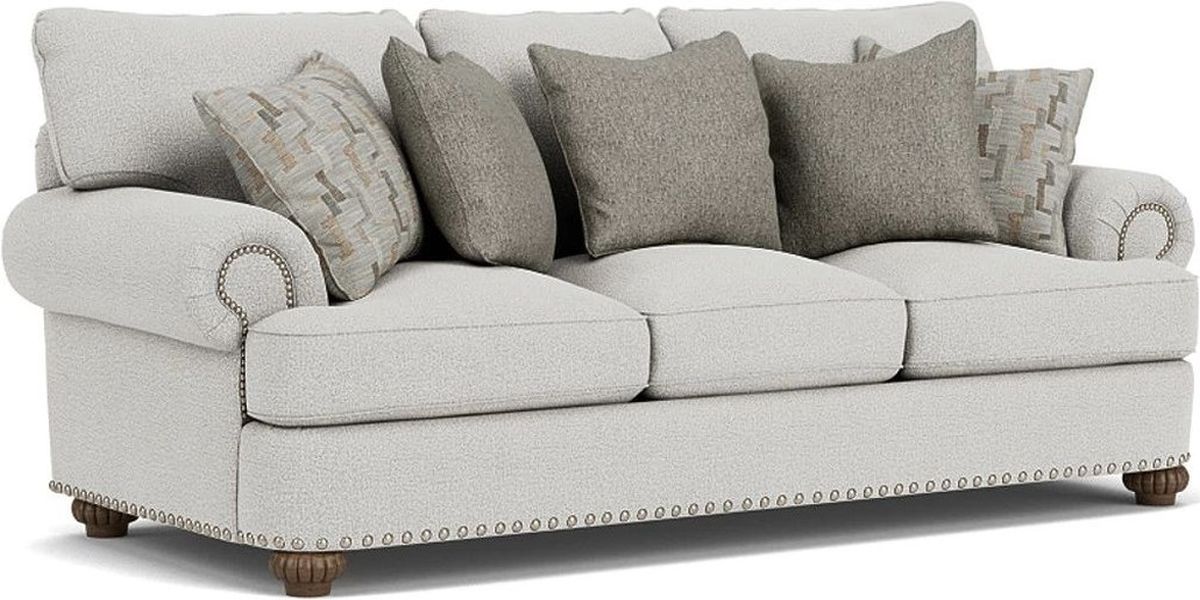 Prominently rolled arms and a padded front rail give Patterson its welcoming appearance. Overstuffed seat and back cushions on a large frame make it difficult to resist curling up on this piece. Fluted bun feet and optional nailhead trim add the finishing touches to Patterson.Read More