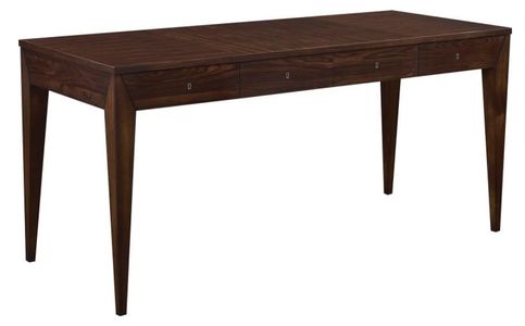 The Lawson Desk with its mitered joints and striking tapered legs has a decidedly modern appeal. Crafted in mahogany with santos rosewood veneers, each of the four drawers is fitted with an antique silver key liner.Read More