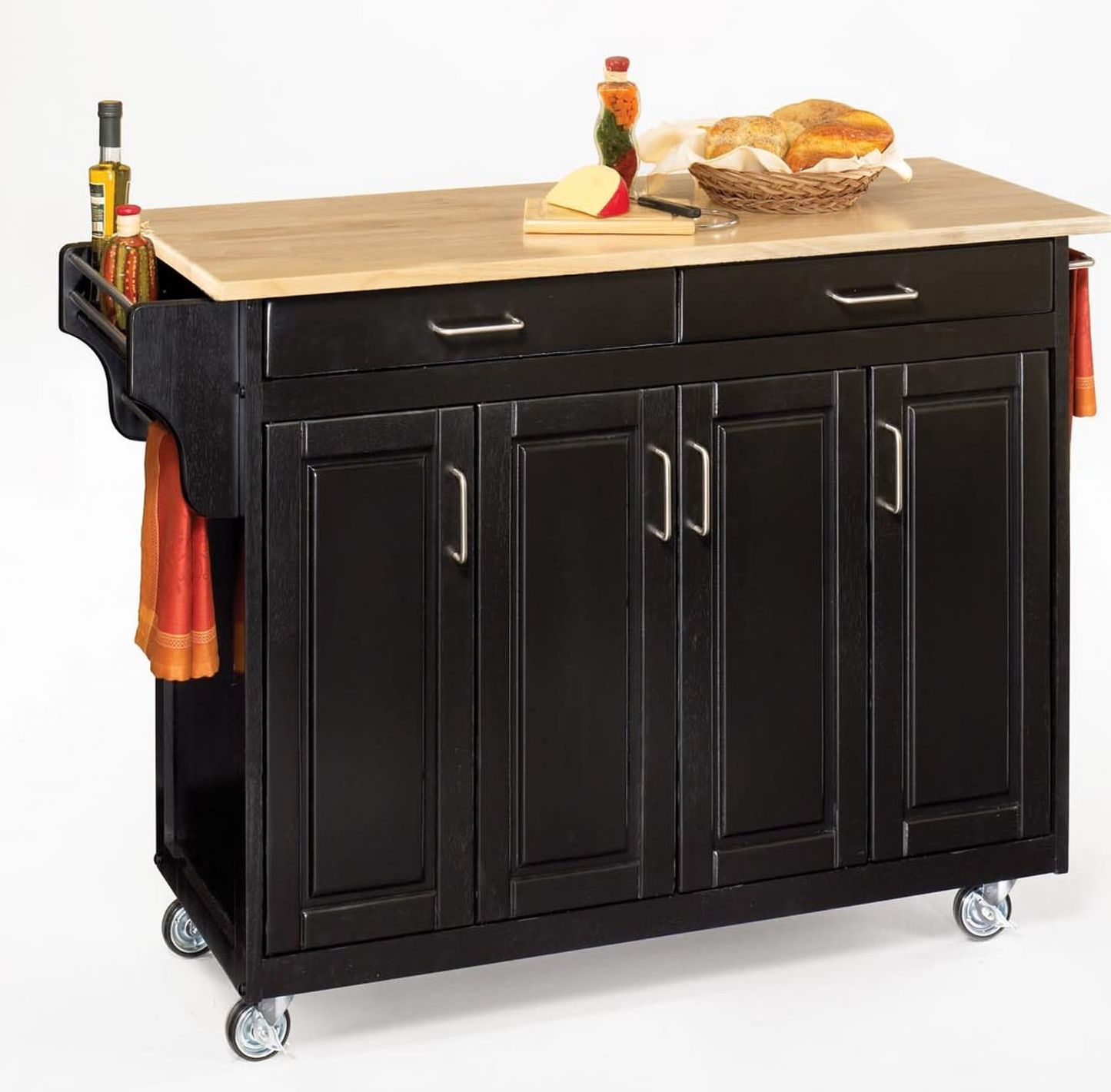 Create cabinet and counter space in an instant with the large Create-A-Cart Kitchen Cart by homestyles. This portable kitchen cart is constructed of solid sustainable hardwood with a durable veneer back and drawers. It has a beautiful black finish and wood top.Read More