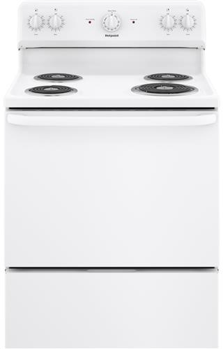 Porcelain upswept cooktop raised edges contain spills, while the surface is easy to wipe clean. Drip bowls contain spills and remove for easy cleaning. Removable full-width storage drawer store cookware or kitchen accessories.Read More