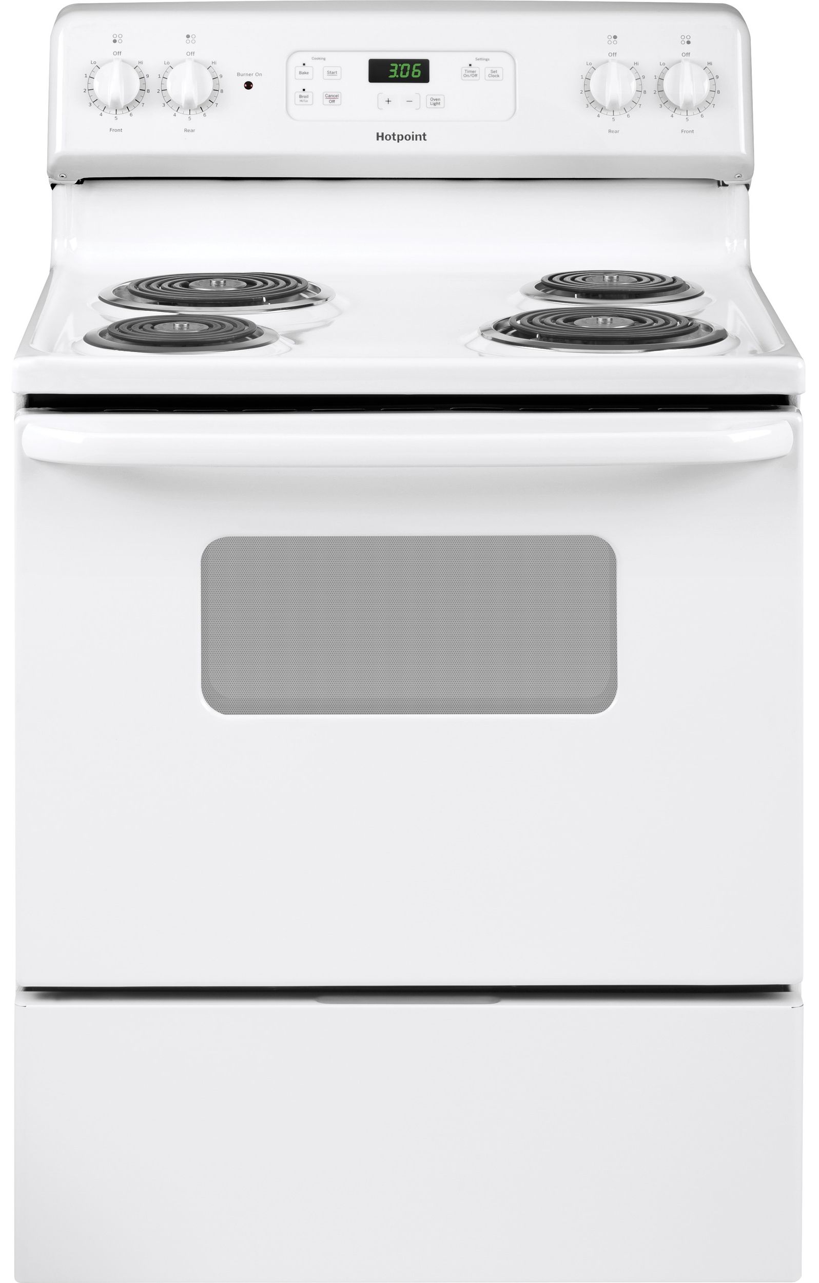Porcelain upswept cooktop raised edges contain spills, while the surface is easy to wipe clean. Chrome drip bowls contain spills and remove for easy cleaning. Removable full-width storage drawer store cookware or kitchen accessories.Read More