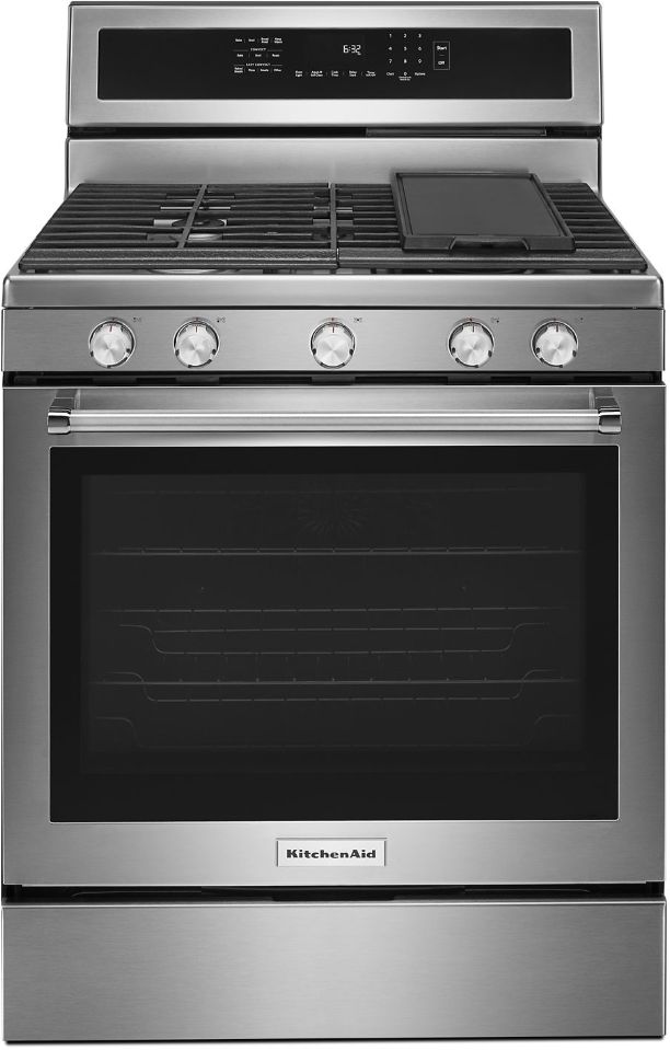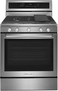 This beautiful gas freestanding range produces flawless cooking results with Even-Heat™ True Convection. The unique bow-tie design and convection fan ensure the inside of the entire oven is heated to, and stays at, the perfect temperature. The oven is 5.8 cu ft., providing a large capacity that’s perfect for preparing multiple dishes at once. The cooktop has 5 burners ranging from 5,000 to 18,000 BTU, letting you go from a rolling boil to a delicate simmer.Read More