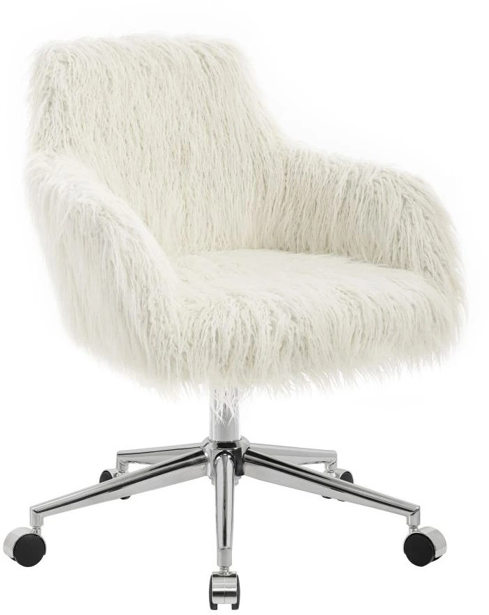The Fiona office chair adds a touch of fun and style to any workspace. This chair features a unique faux fur that is upholstered to the seat and back. Completed with a chrome base and rolling castors that allow for easy movement around your workspace.Read More