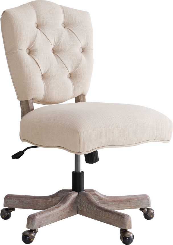 The Kelsey office chair delivers a traditional yet stylish element to any workspace. The detailed tufted back and padded natural seat bring out the chair's timeless design, while a gray wash base accents the chair and provides a rustic feel.Read More
