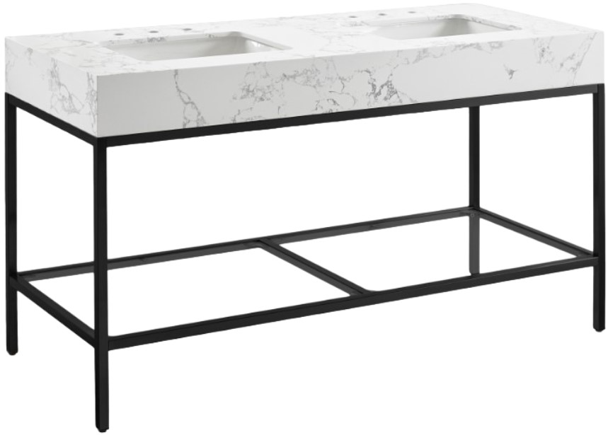 Give your bathroom a fresh new look with this Marmo 60-inch bathroom vanity. This eye-grabbing vanity gives your restroom a spa vibe that's oozing contemporary charm and sophistication. The marble sink features white veining for an upscale presentation and rests on a matte black-finish stainless steel base for long-lasting beauty and performance.Read More