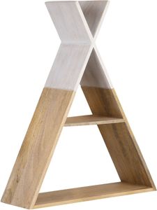 This triangular wall shelf completes any quirky-casual space. Two natural wood shelves in the frame allow for a layered look with endless creative opportunities. White finished wood adds a unique contrast to the top of the piece.Read More