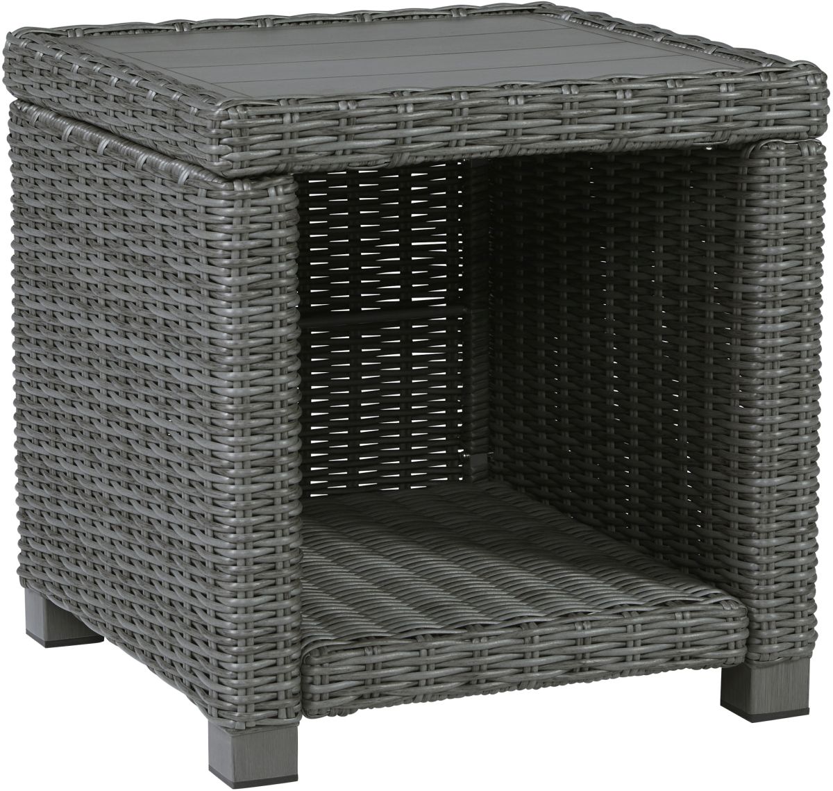 Add a distinguished touch of gray to your outdoor living space with this end table. This head-turning table is made with resin wicker over an aluminum frame for a relaxed look that provides seasons of enjoyment. Its aluminum top combines the exceptional durability and weather resistance you need with the "wood look" finish you love.Read More