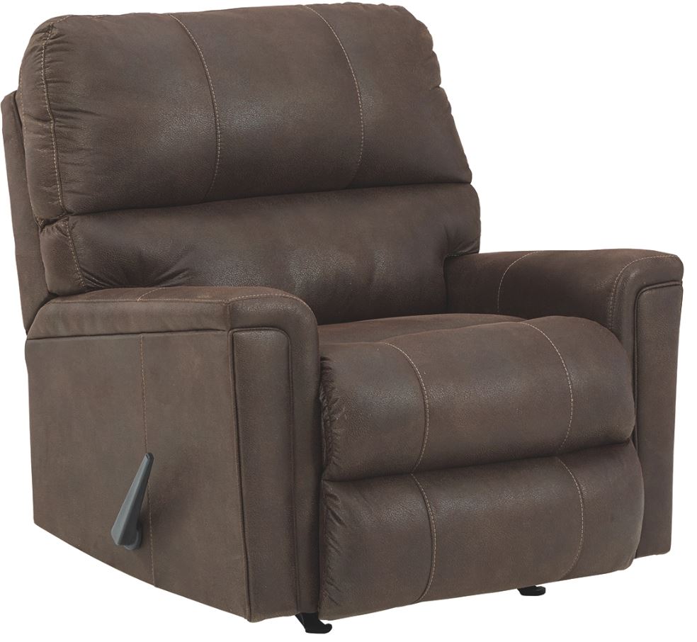 If you love the cool look of leather but long for the warm feel of fabric, you can take comfort in this rocker recliner. Wrapped in a fabulous faux leather with a weathered hue and hint of pebbly texture to resemble the real deal, this decidedly modern recliner proves less is more.Read More