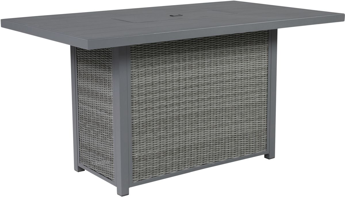 Turn your backyard into a hotspot for entertaining with this bar table with fire pit. Sporting a neutral gray finish, the rectangular table elevates the art of al fresco living. Its chic aluminum frame is paired with all-weather resin wicker for beauty and brawn.Read More