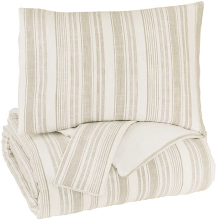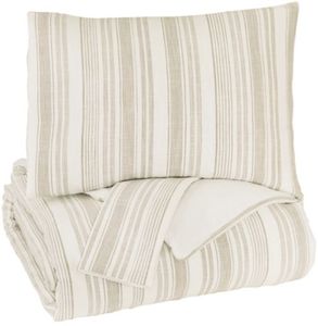 Snuggle up in simply stunning style with this king comforter set. Inviting in shades of ivory and taupe, its classic striped design gives the set a timeless look with modern appeal.Read More