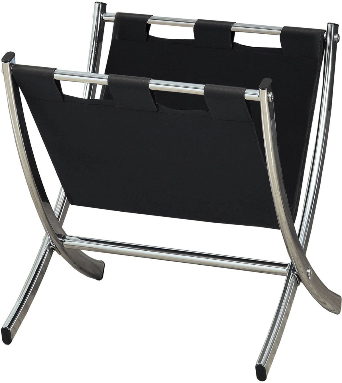 Freestanding black leather look magazine holder easily stores any assortment of magazines, newspapers or books
