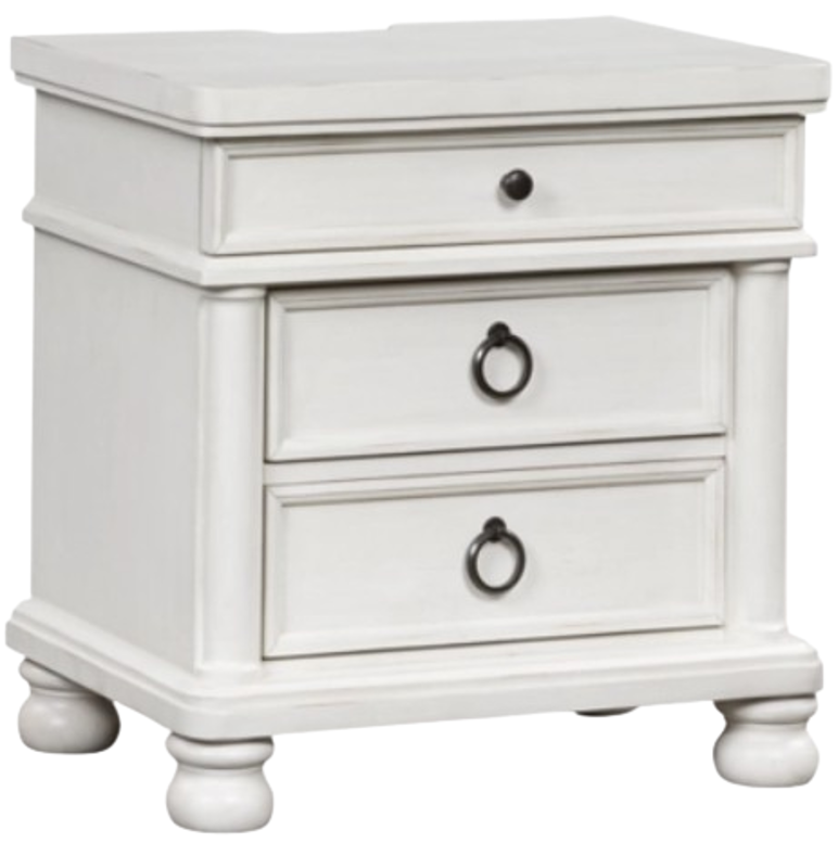 The Signature Design by Ashley® Rowlenstown Antique White 3-Drawer Nightstand blends timeless charm with everyday function. Featuring a distressed antique white finish, framed drawer fronts, and dark metal hardware, it offers ample bedside storage. Perfect for traditional or farmhouse-inspired spaces, this piece adds warmth and character to any bedroom.Read More