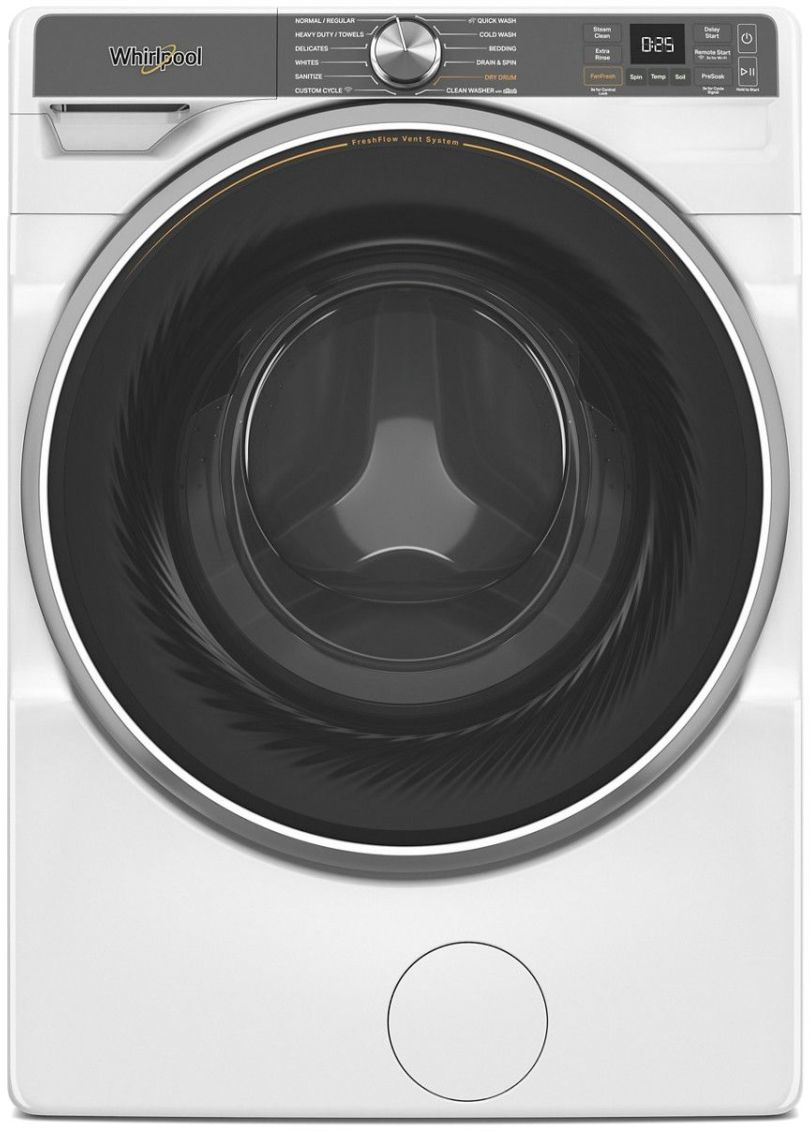 This extra large capacity front load washer has a trio of freshness features with the FreshFlow™ Vent System. It's is the first fan-powered system with antimicrobial protection designed to help keep your clothes and washer fresh.Read More